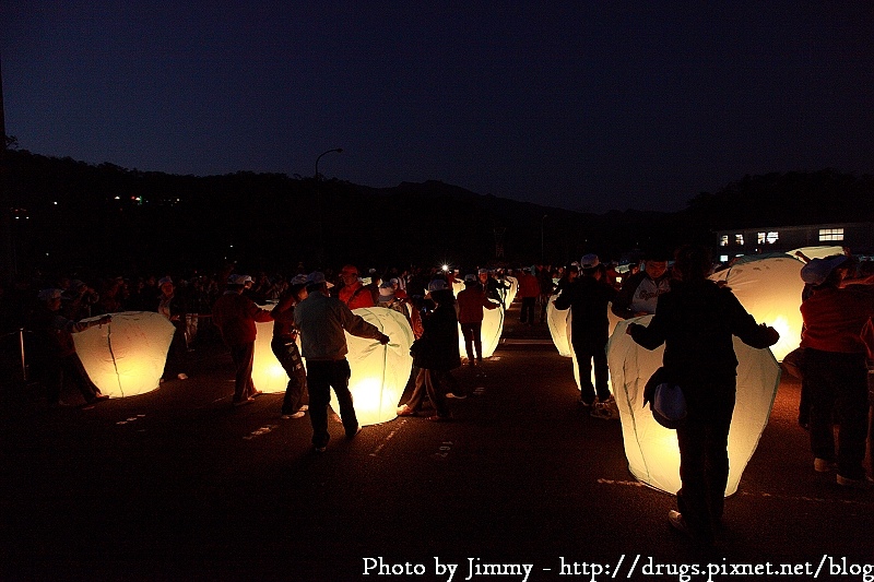 準備施放天燈,好像在孵蛋的感覺,全部的人就等著總指揮一聲令下!所有天燈就會齊放啦!