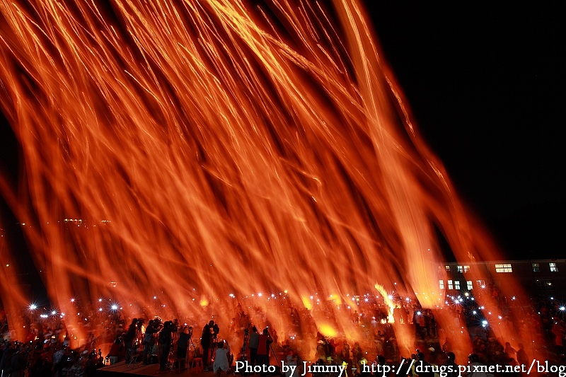 2.在下方佔至少一個位置,若是多位攝友一起去可以不同方位多佔幾個,到時再攝友間互位置換,然後另一位攝友在上方高台站個位置,因為總共有12波施放,因此可拍完幾波後與另一位攝友互換位置,這樣就可以拍好幾個角度,若是有一群朋友,可以多站幾個角度的位置,到時在互換,不要大夥好朋友都"佔在同一個位置喔",這樣回去看大家的照片都一樣啦!