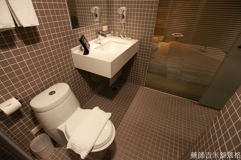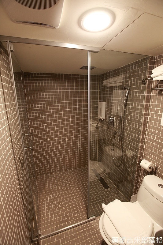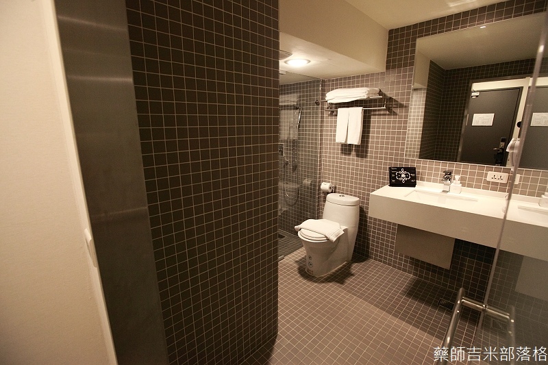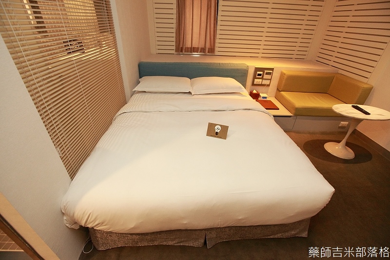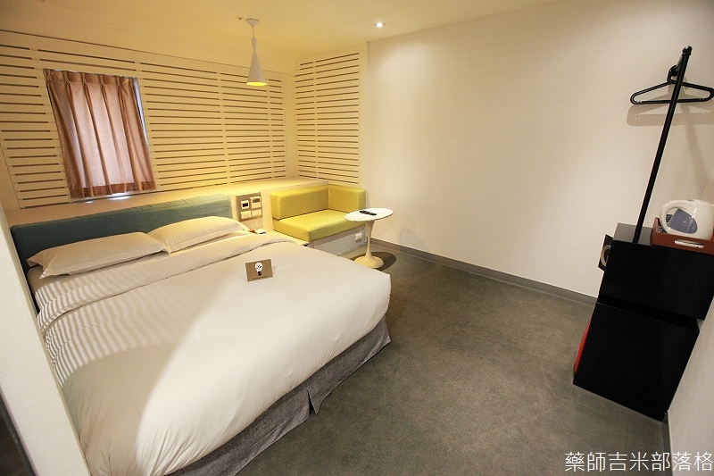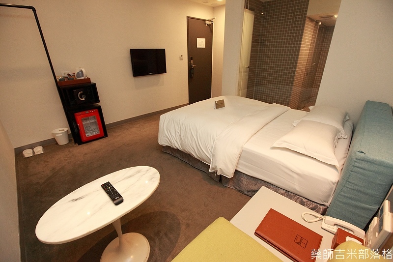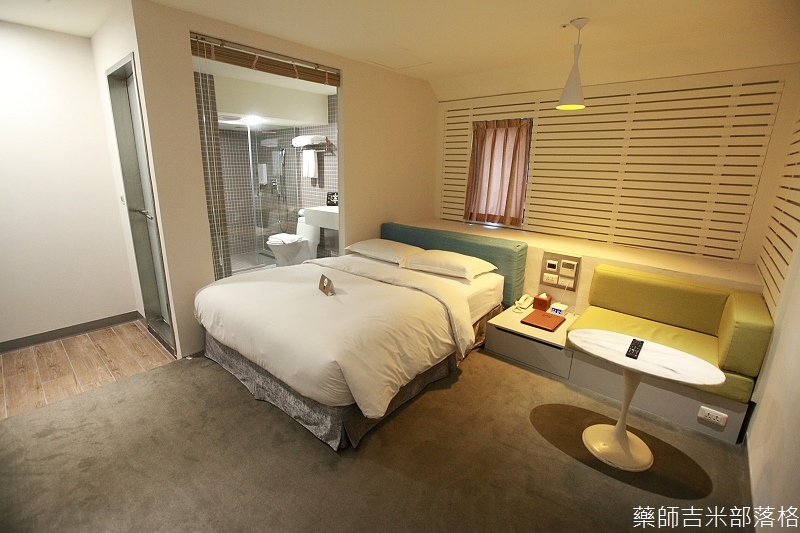 吉米住的是高級客房,比標準客房高一級,不過房價都不超過2000元台幣,真的很便宜,設計風格是時尚溫馨的感覺,大小約16平方米,衛浴的部份採用透明落地窗,所以整體空間上就不會覺得太小,有免費有線及無線上網
