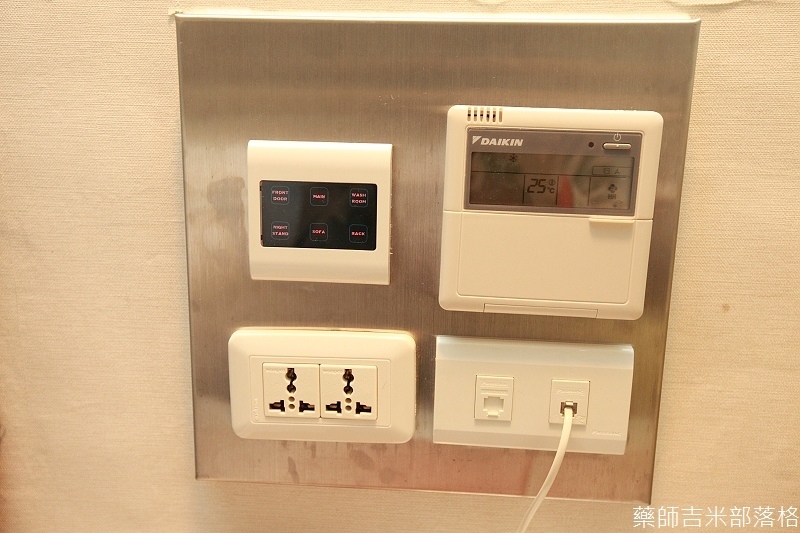 畢竟這理國外旅客很多,因此二十輪旅店很貼心的準備了多國插座給房客使用,另外房間開關包含所有的電燈、冷氣都集中在此控制,很貼心