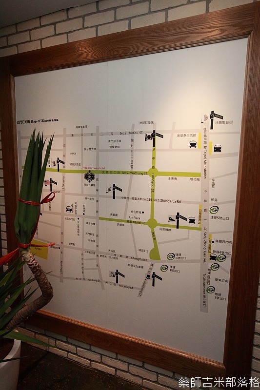 另外【二十輪旅店】六樓LOBBY還有一個大型的西門町地圖,上面有標上捷運站、公車站及二十輪旅店的相對位置